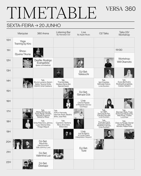 Fazia MUITO tempo que eu não via nada parecido com isso e, se me permitem, vou chamar de festival criativo. A Versa 360 é uma plataforma que propõe novas formas de conectar, criar e coexistir para amplificar o mercado criativo. Acontece no Pavilhão da Bienal de São Paulo no dia 20 e 21 de Junho, propondo diferentes formatos de experiências complementares: exposição, música ao vivo, talks, workshops, fórum, listening bar e night.